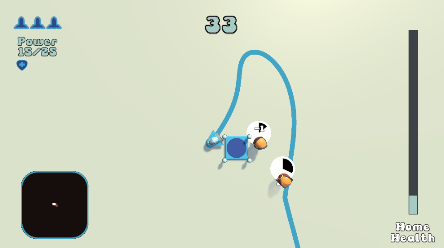 Wrap the enemies with the ribbon when they're stunned by flying a circle around them. Wrapping around cubes will add health to your home base.